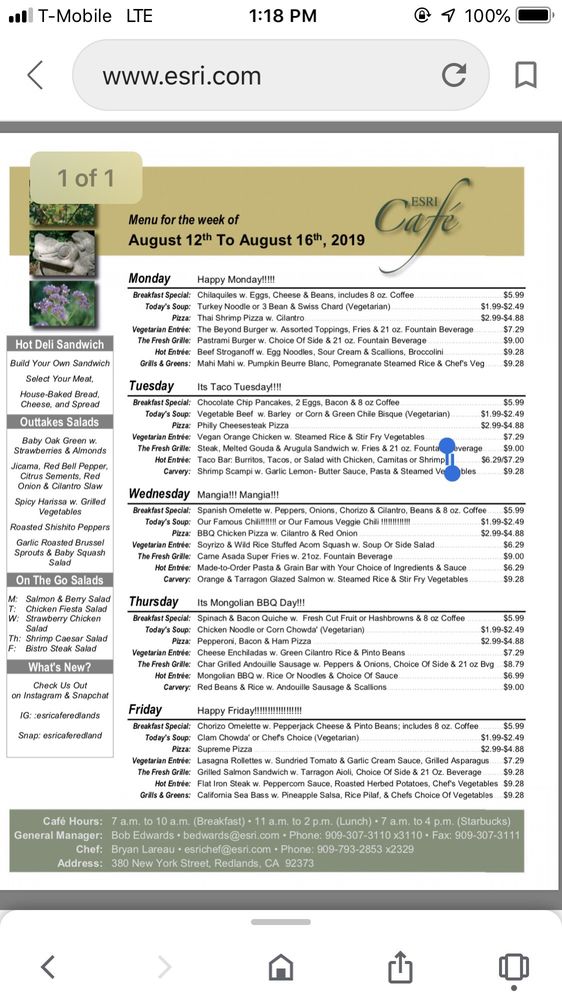 Welcome to Esri Café, an inviting spot in Redlands, CA, where New American cuisine meets delightful brunch offerings. Nestled at 370 New York St, this café is a favorite for locals seeking a peaceful atmosphere paired with a delectable menu. With a focus on rotating hot specials, you can savor stars like their highly praised double cheeseburger, which packs flavor and value.